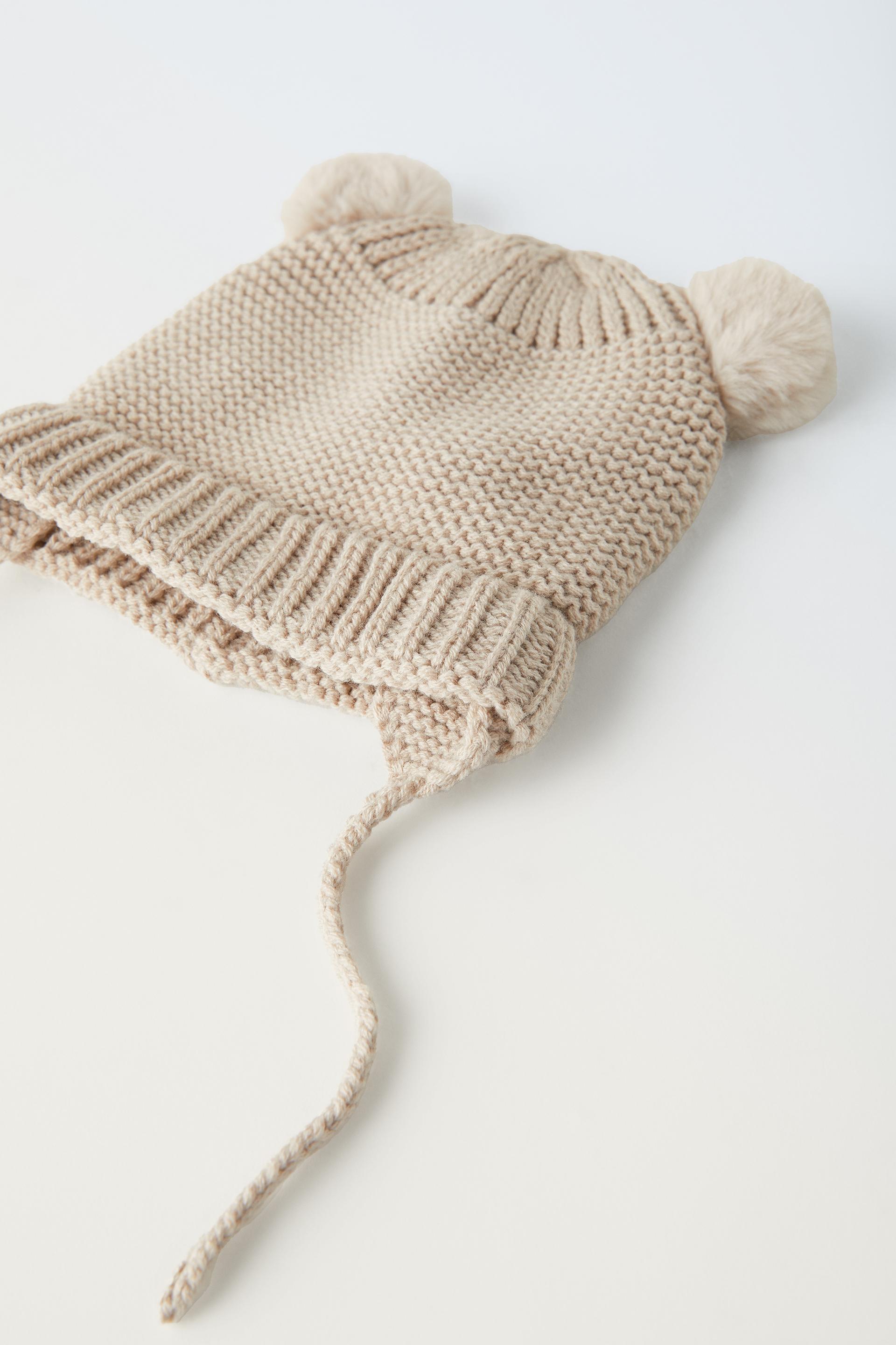 Purl Knit Hat With Pompom Camel Zara United Kingdom